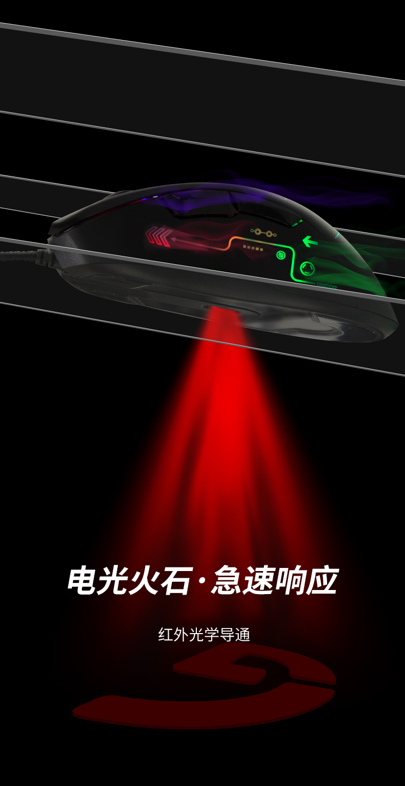 光磁微动 有线鼠标 游戏鼠标 RGB炫光电竞电脑鼠标 黑色